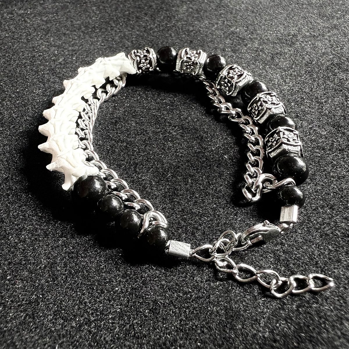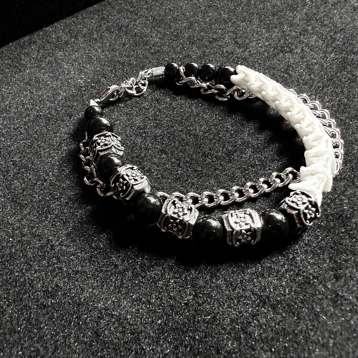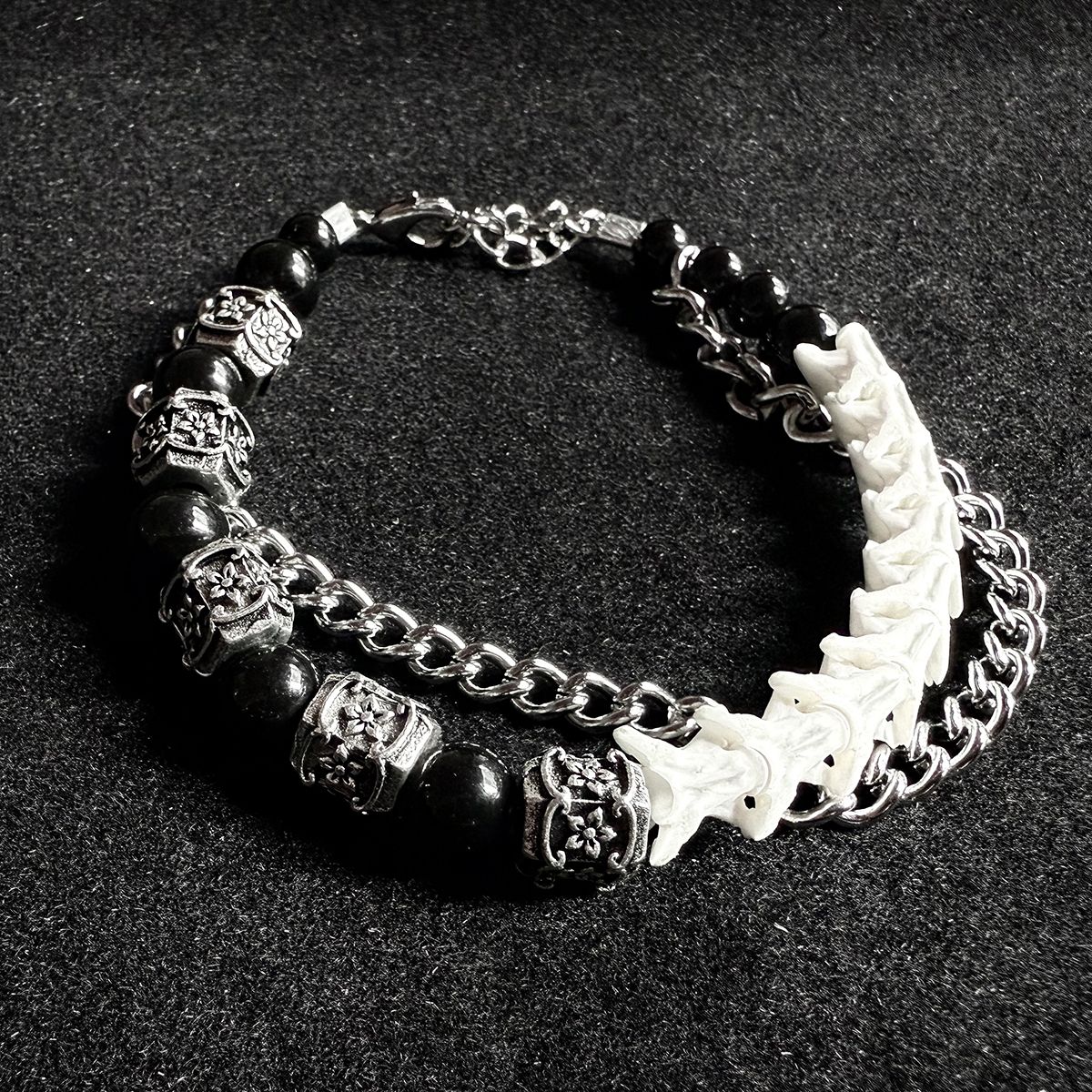 All snake bones used in our pieces are ethically sourced from certified, licensed breeders. The snakes were humanely raised in captivity and died of natural causes. Each bone undergoes meticulous hand-sanitization, polishing, and careful selection for optimal density, ensuring that every bracelet is not only unique but also safe and durable for daily wear.