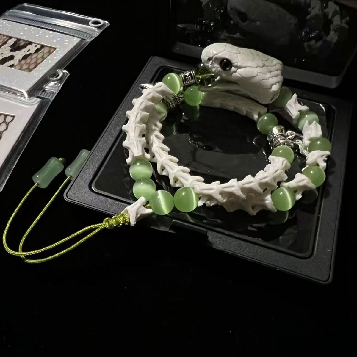 All snake bones used in our pieces are ethically sourced from certified, licensed breeders. The snakes were humanely raised in captivity and died of natural causes. Each bone undergoes meticulous hand-sanitization, polishing, and careful selection for optimal density, ensuring that every bracelet is not only unique but also safe and durable for daily wear.